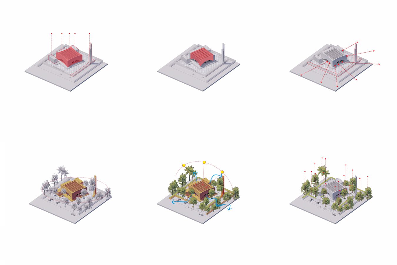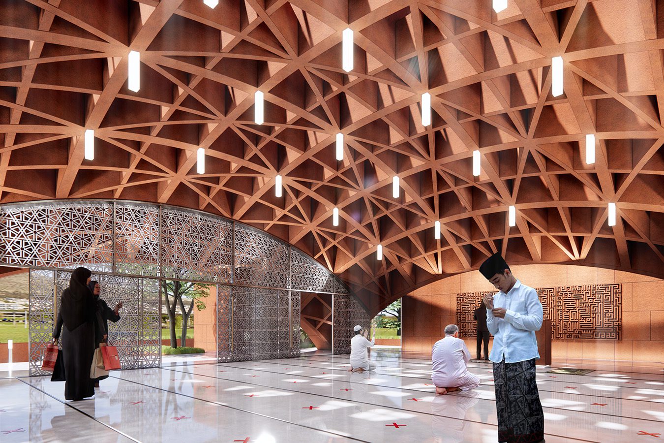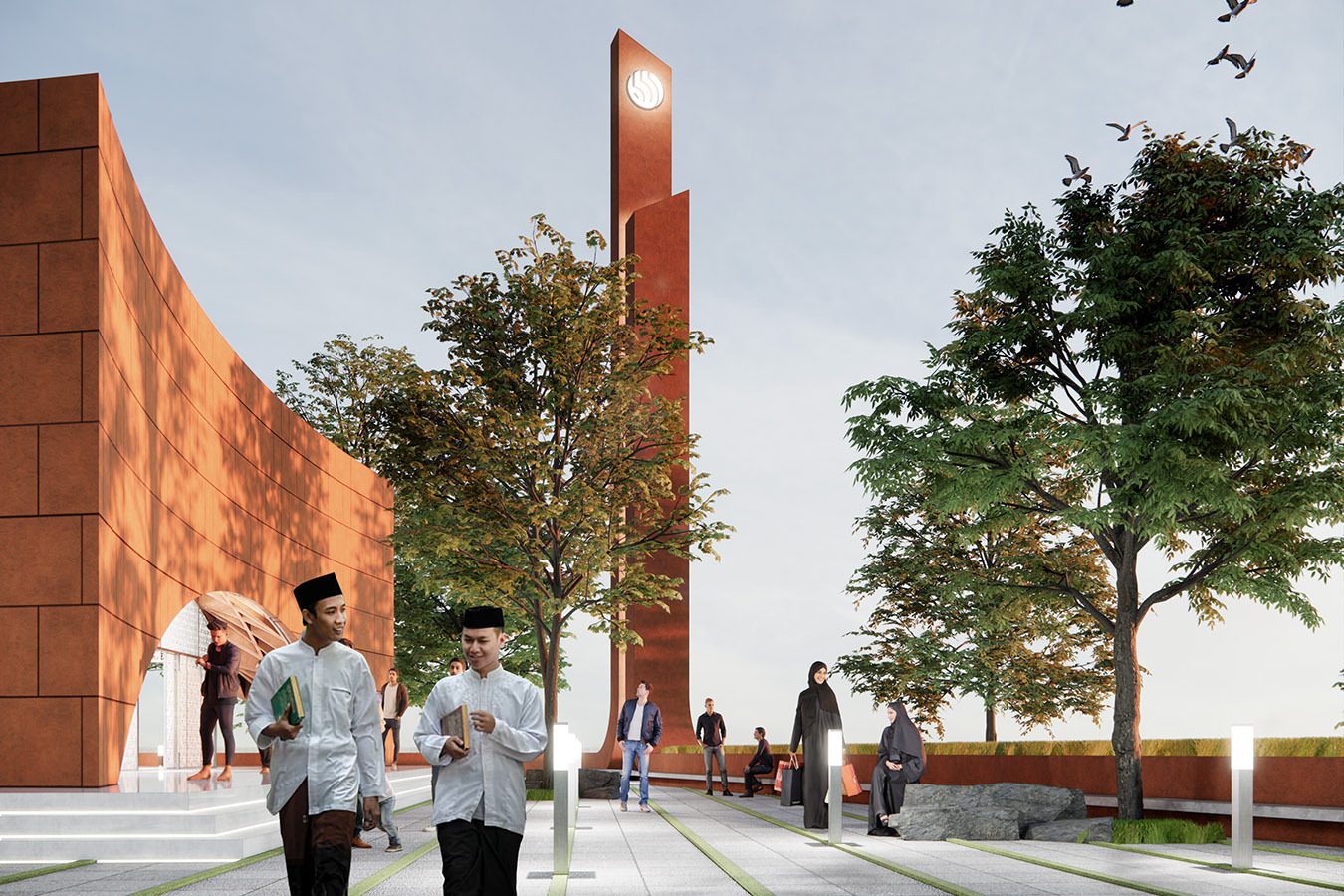 Selain sebagai tempat ibadah, masjid diharapkan dapat berfungsi sebagai tempat “berkontemplasi”. Tempat manusia memikirkan perannya sebagai hamba bagi Tuhannya. Yang suatu saat akan meninggalkan harta, kedudukan dan jabatan ketika kembali kepada sang penciptanya. Nilai – nilai inilah yang tercermin di dalam desain masjid dengan tampilan sederhana tanpa ornamen dan kemewahan. Hanya tampak dinding dan atap bertekstur tanah yang melingkungi. Mengingatkan pada akhir kehidupan manusia yang pada akhirnya akan dikubur di dalam tanah.