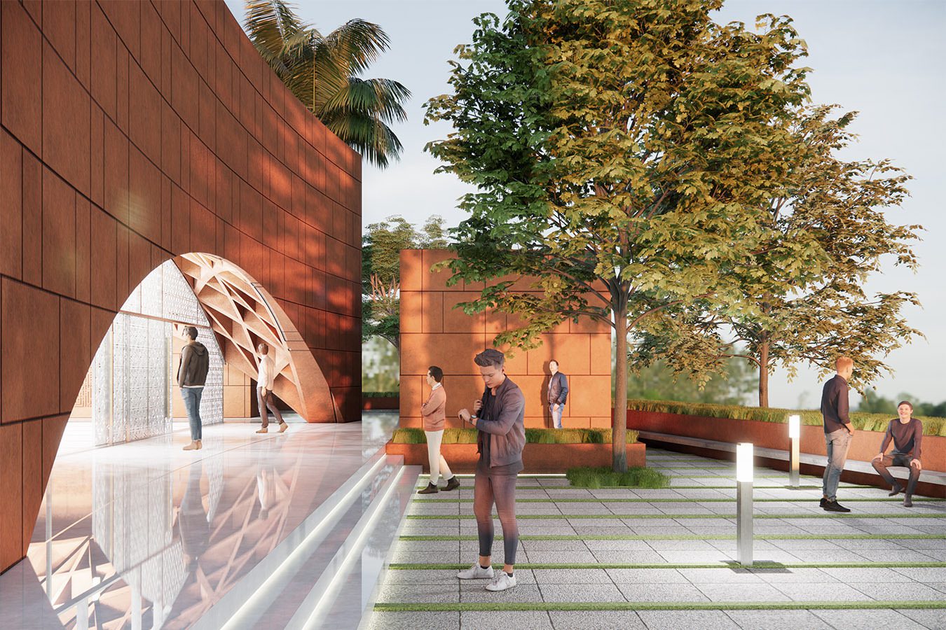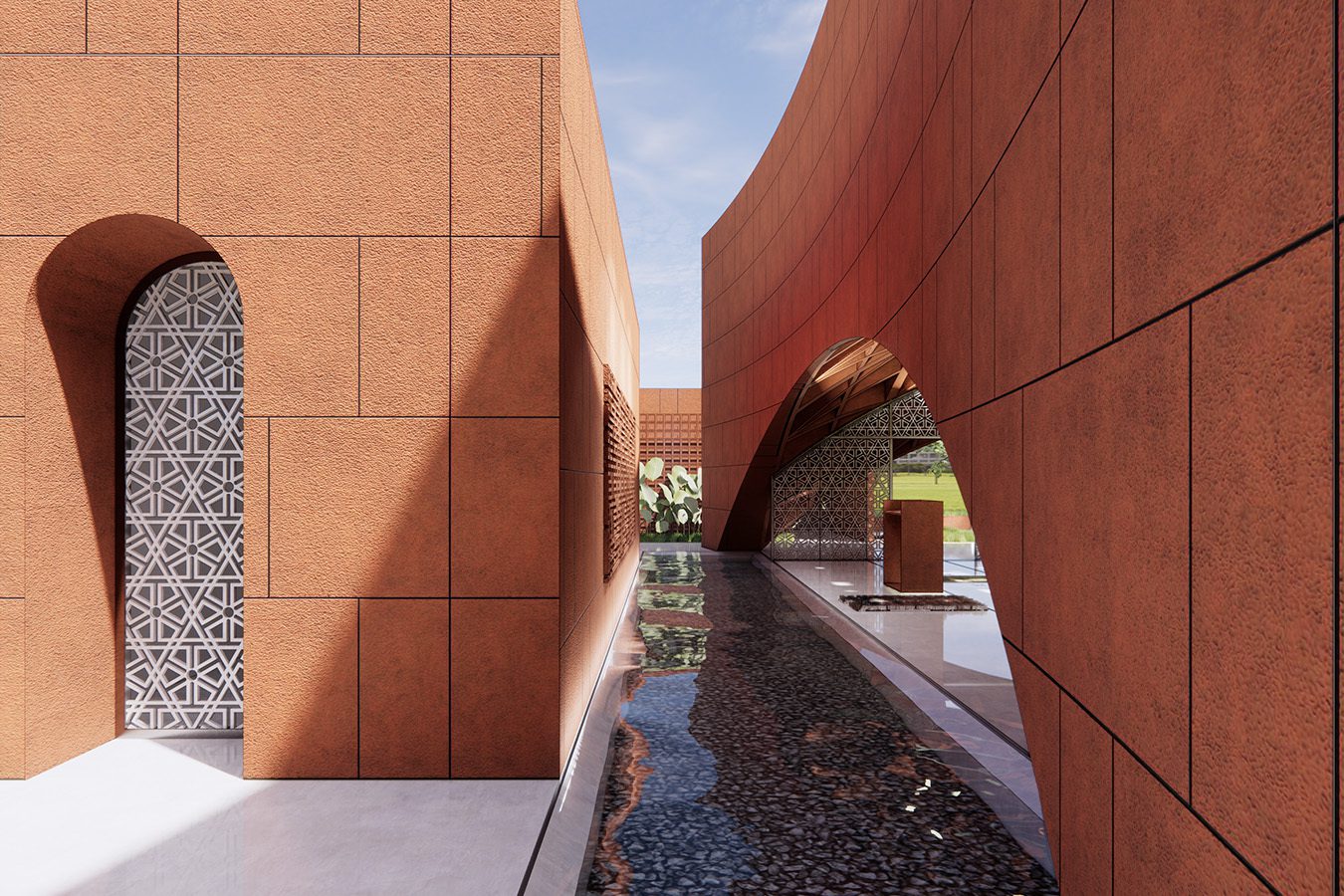 “Dzikrul maut” menjadi ide dasar rancangan masjid ini. Nilai – nilainya teraplikasi pada pemilihan bentuk maupun tekstur / tampilan material fasadnya. Kesederhanaan massa utama berbentuk kubus mengingatkan pada ka’bah sebagai pusat peribadatan umat muslim. Sedangkan tampilan fasadnya menggunakan material terracota bertekstur tanah. Kesederhanaan tekstur dan materialnya mengingatkan pada “awal dan akhir” kehidupan manusia. Karena sejatinya manusia diciptakan dari tanah dan akan kembali ke tanah.